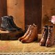 在鞋孔系带融入古典设计,优雅流畅的交叉系带为牛津靴款的延伸亮点;