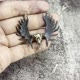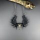 此款麋鹿头骨项链采用珠宝级白铜制作,并以熏黑处理的鹿角点缀。整体工艺品保留了白铜的真实原色,未经电镀,您可以随时自行抛光。但请勿抛光熏黑的部分,以免影响其色泽。