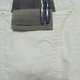 前片插在袋口外,笔插入后可以将笔袋和白袍固定