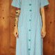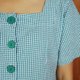 Description: F967(Vintage)湖水绿色双口袋格纹短袖古着洋装