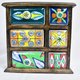 公平贸易组织手工制作的小木柜,在陶瓷的抽屉上手绘图案,卡榫设计让抽屉不会滑落