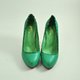 多愁善感跳恰恰 前进两步退一步 花苞脚踝细跟高鞋 绿