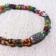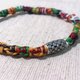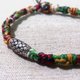 扣上的方式,是用蜡线套住圆盘款捷克珠。亮眼的珠珠让手环更有整体风格。