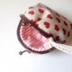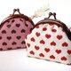 表布 红心米底。里布 粉白线条。口金 亮褐。