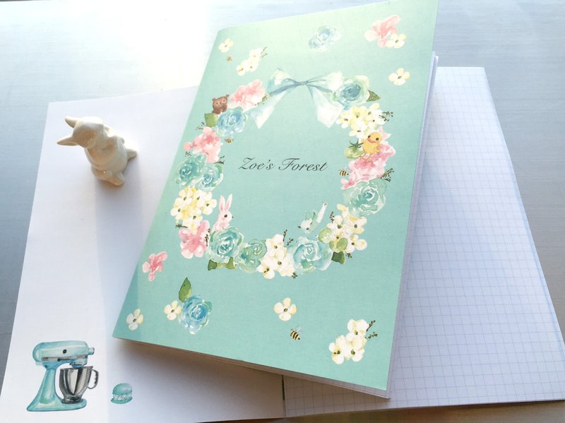 内页64页-蓝色网格 尺寸15*21cm 骑马钉 喜欢蓝色绿色胜过于粉色与紫色, 蓝绿色对于女孩有一种坚定而梦幻的美丽, 所以一直想画一圈蓝绿色系的花环 让你也拥有一座Tiffany蓝花园 产地/制造方式 台湾