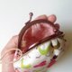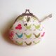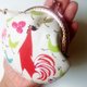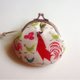 表布 公鸡群图样、里布 粉底水玉、口金 亮粉、绒绳缎带随机。