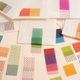 运用日本和色在24格小方格内配上简单的线条与色块。上下左右、一格两格四格六格切割。靠自己的创意,可以变出超过24种的变化。