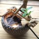 商品材料 : 小石头、小竹杓、竹架、小水盆、出水竹器+软管、沉水马达与变压器+水中灯、种子+水苔(置于竹架孔内种植)