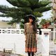 Description: (Vintage)咖啡色精致花纹短袖古着洋装