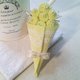 完全手工制作的蕾丝珠珠布料花朵小花花束别针,用毛毡手工一个一个制作花朵和甜筒包装。在花朵后有珠珠和织带装饰穿插装饰,在甜筒包装上有蕾丝和织带蝴蝶结,让整个花束除了浪漫可爱又高雅有质感。