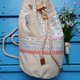 北欧款式特别十字绣印花图案,真皮配料,粗绳背包/肩背包/全棉帆布/手工制