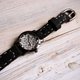 手缝双面真皮表带, 传统设计, 特别彩用纯黑麂皮,朴实而典雅
