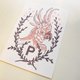 “P is for Parrot”手工版印明信片-鹦鹉 (abc字母明信片)