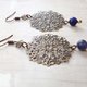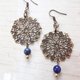 采用了金属材料及天然石的复古圆形系通花耳环,属于中长度的。