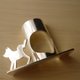 This is a ring with a dog peeing on a telephone pole as a motif.