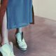 将潜沉已久在瞬间展翅蜕变的力量,描写于鞋面语言上。鞋头不规则皱褶皮料象征着蜷曲的体态,经过时间的堆叠展现如蝴蝶翅膀般挺立。她已准备好体验任何新事物,用她优雅的力量继续寻找酝酿下一个梦想。