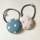 表布 蓝底米点、米底粉点。松紧绳 粉色。