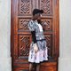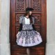 Description: F828(Vintage)黑色底蕾丝花朵图样短袖洋装
