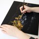 利用刮棒的尖端,刮出一整幅金色的城市夜景图,把整个城市点亮