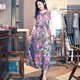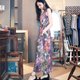 粉紫花鸟无袖抽绳长洋装 NT2480