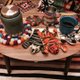 一个一个缤纷色彩的球球连接而成的杯垫,