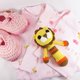 ☆摇铃主要做为安抚宝宝的陪伴玩偶,内部塑胶球铃是沙沙清柔声响,保护宝宝耳朵以不吵杂为设计理念。
