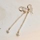 Earrings with a simple and delicate design that connects tiny freshwater pearls in a straight line like a white "thread". The 14k gold-filled parts that shine in places go well with the soft white of pearls.