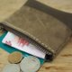 零钱包底部是反光度很高的滑面皮革,上部是反光度很低的磨面皮革
