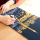利用刮棒的尖端,刮出一整幅金色的城市夜景图,把整个城市点亮