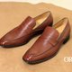 ○ 鞋面马克交叉车缝改成螺旋缝法,让Loafer更加典雅。