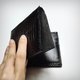 皮夹使用黑色的蛇腹皮,搭配上黑色的牛皮,低调却又让人无法忽略。