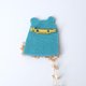 Bear brooch wrapped with sparkling stole. Embroidered with a blue glitter thread on a gray leather-like cloth. Uses freshwater pearls and light green natural stone (peridot stones). Slightly larger but lighter. The point is a long decorative thread.