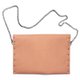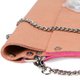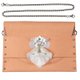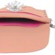 包包是以柔软的超纤猄皮制成,中间夹一层桃红色毡绒,在柔和的裸色注入活力