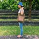 橄榄绿 X 驼色口袋 / 棉麻材质。