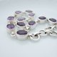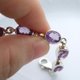整体色泽颇均匀的天然紫水晶纯银手炼,色泽不过深、不过浅,是蛮漂亮的薰衣草紫,单颗紫水晶的重量约1.3克拉左右,整体晶质干净,只有一两颗有一点点的小云雾(小朗是用10被放大镜看的),部分宝石晶体内有金字塔色带,因颜色够浓郁所以并不明显,拿起来细看时才会发现。