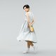 磨毛棉麻皱折绣罩衫高腰连衣裙