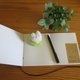 于是设计一款封面是花莲绿色的山、打开后可以拉长变成两倍大的笔记本,随身携带时轻巧方便,打开书写时可以尽情地在很大的纸张上写写字、画画图。