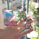 绿点点小狗(大小:5x4 cm):害怕的他手足无措,胆怯的看着来往的人,有一个会是永远的主人吗?