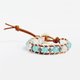 【材质】蓝玉髓8mm、白玛瑙8mm、真皮牛皮绳、贝壳扣