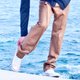 使用了高级墨代尔棉的弹性长裤,具备高延展性的垂坠布性,俐落单口袋设置,并以立体打折的方式显现了休闲长裤的存在感。