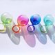 A sphere shape glass ring with water inside ,hand blown glasswork made of clear borosilicate glass with tender and carefulness.Comes in two-tone painted color which creates colorful reflection effects.