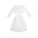 - 上衣部分领子经过方格绗缝修饰、边沿有着欧根纱荷叶边装饰。