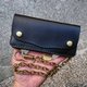 商品描述:以厚实的植鞣牛皮打造而成,搭配我们开发的LOGO黄铜扣,呈现经典的卡车司机长夹,内有六个卡片夹、一个拉链袋、一个大证件夹及一个钞票夹,容量十足。