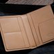 此款护照夹的设计以简约大方为方向, 均衡比例的内层排列方式减少了皮革的厚度拿取更起来更轻薄及轻巧, 外层内里也使用 Buttero 牛革皮贴合缝制提升了整体的质感。