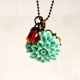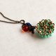 树脂花、黄铜花边底座、黄铜电镀古铜色链子、日本玻璃珠。