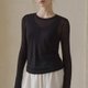 真丝羊绒圆领背心两件套针织长袖 T 恤