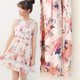复古夏日可爱蜡笔涂鸦印花棉质淡粉色无袖古着洋装-D534