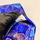 《锦浪苍鳞》选用深蓝色织锦缎,细腻的扇形纹路层层交叠,呈现如海潮般的光泽律动。布面在不同角度下展现细致光影,为整体造型加入低调却鲜明的重点。
