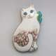这是一款以蓝眼白猫为造型,仿佛被花朵环绕的胸针。