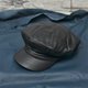 羊皮创意家, 这是一款贝克帽 ( baker boy cap ),台湾常称南瓜帽或船长帽,以欧美的帽型来分是一种休闲的帽款, 这款贝克帽是 8片式的宽体款式,帽体采用复古色泽纹路羊皮制成的皮帽,内里采用特别设计的格纹纯棉布料,轻薄、透气、吸湿,可长久配戴;纯棉内里不会因为与头发磨擦产生静电而造成掉发与头皮不适。 因为够宽的帽体,可以前、后、左、右任何方向摆放,变化出各种造型,男女均适合的帽款,搭配T-shirt、休闲衬衫、牛仔裤,或是不成套的西装都可以突显个人时尚风格。